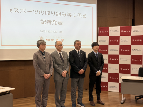 12月19日(金)に福岡大学2号館会議室にて、福岡大学が行うeスポーツに関する取り組みや、eスポーツが持つ可能性、魅力について、福岡大学スポーツ・健康まちづくりコンソーシアム(FUスポまち)による地域貢献モデル、商学部による人材育成モデル、理学部学生の世界大会出場などを記者発表しました。