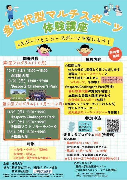 福岡大学スポーツ・健康まちづくりコンソーシアム(略称:”FUスポまち”コンソーシアム)は、自治体・スポーツ団体・スポーツチーム・企業・大学が産学官で連携することで、地域が抱える課題共有や解決策を模索できるようにすることを目的とした共同体です。コンソーシアムがあることで、これまで常時、連携・協力が難しく点と線での対応だったものを面として捉えることができるようになり、地域の課題解決に務めることができます。